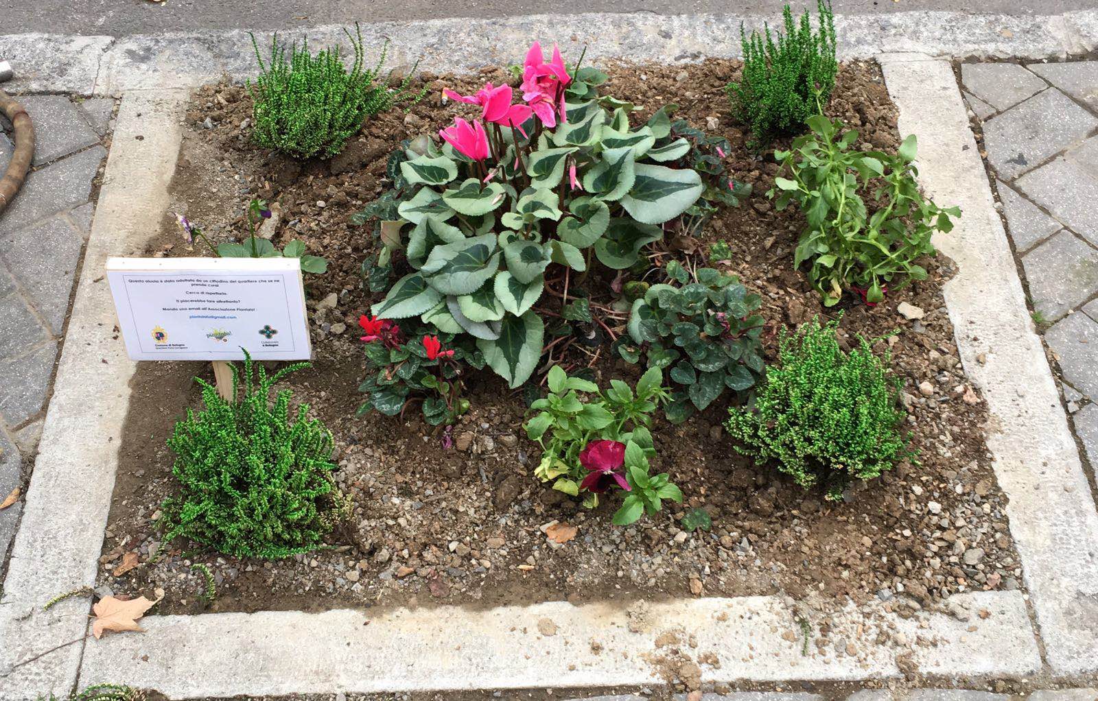 Le aiuole curate dai cittadini con il supporto dell'Associazione Piantala!!, attività realizzata nell'ambito del patto di collaborazione inerente.