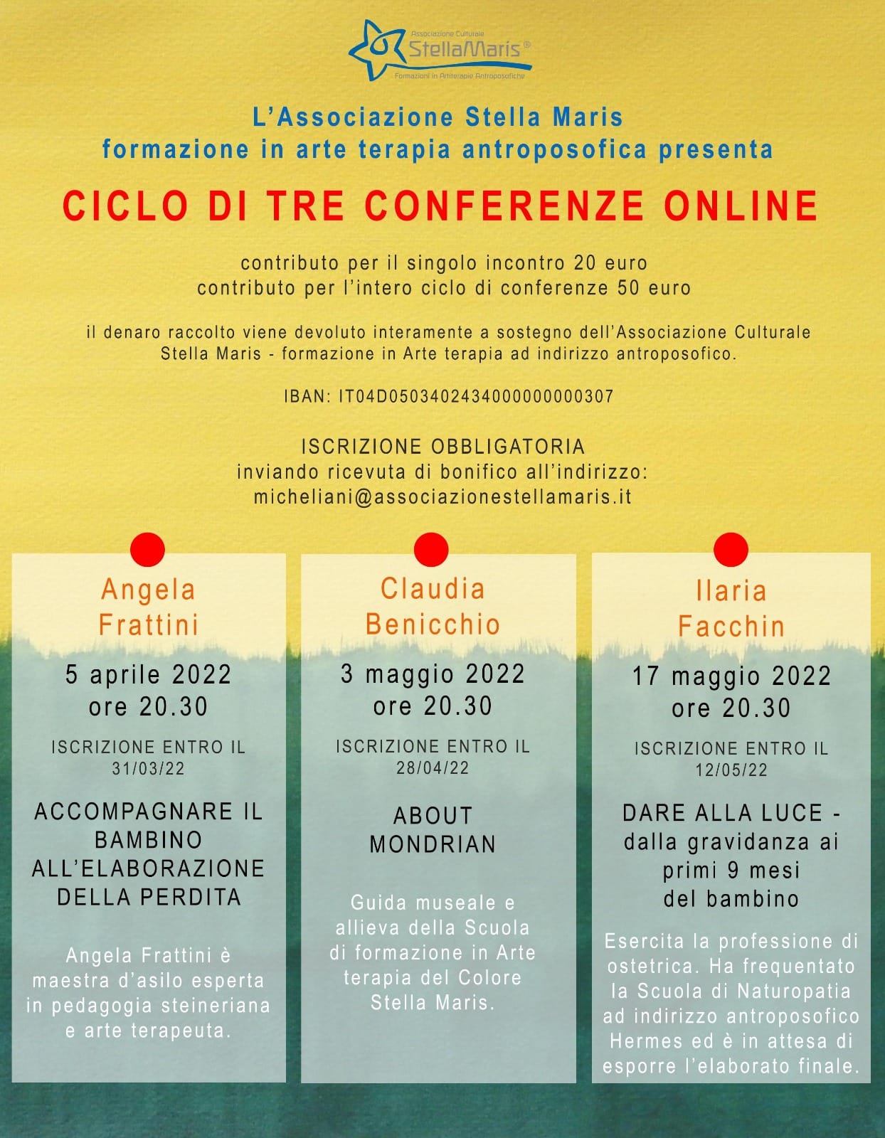 Inviando ricevuto di bonifico all'indirizzo:micheliani@associazionistellamaris.it