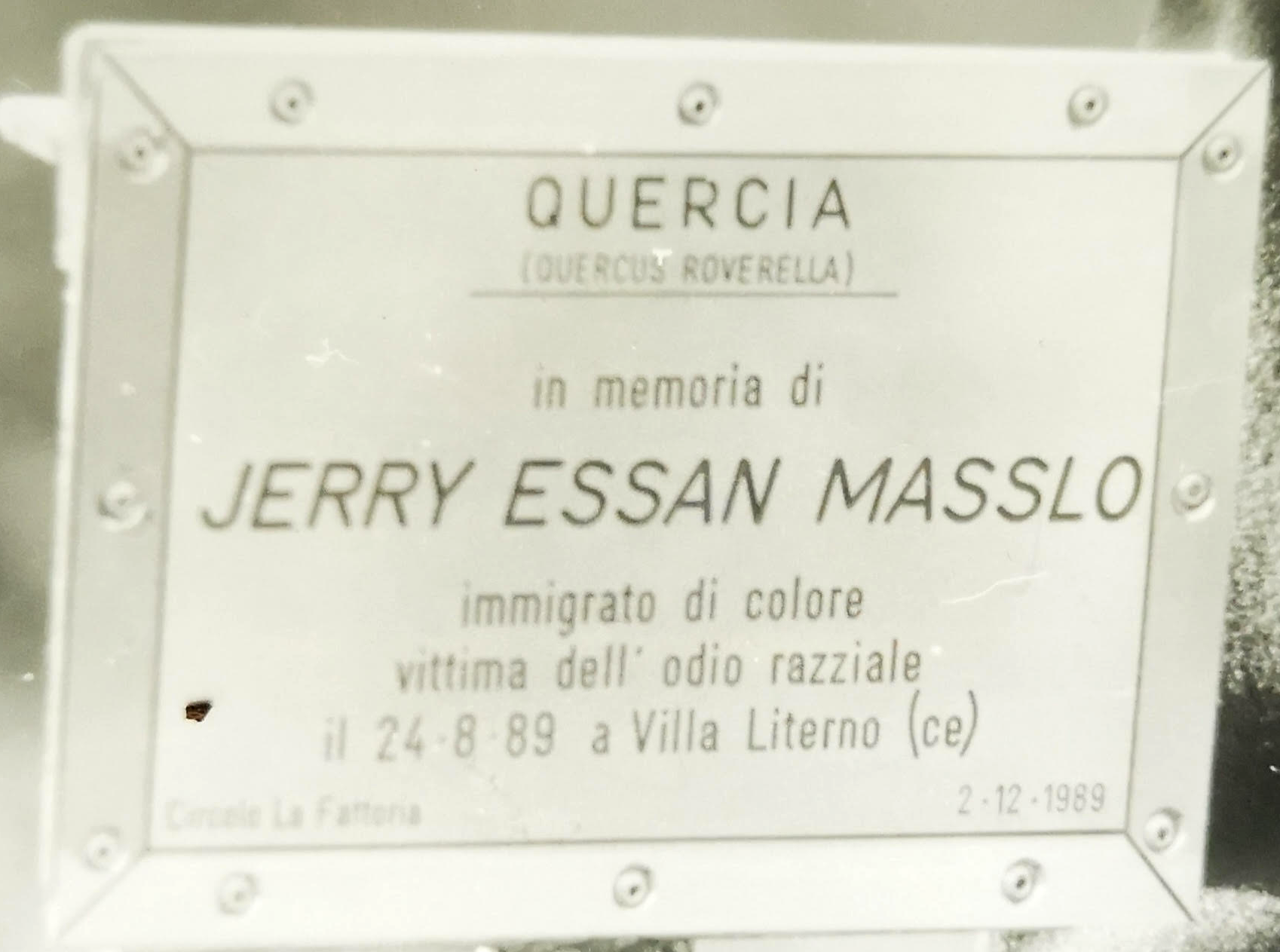 Il Circolo La Fattoria propone di riprostinare la targa dedicata a Jerry Masslo, rimossa a seguito dell'abbattimento dell'albero per consentire la costruzione della caserma dei Carabinieri in via Casini.