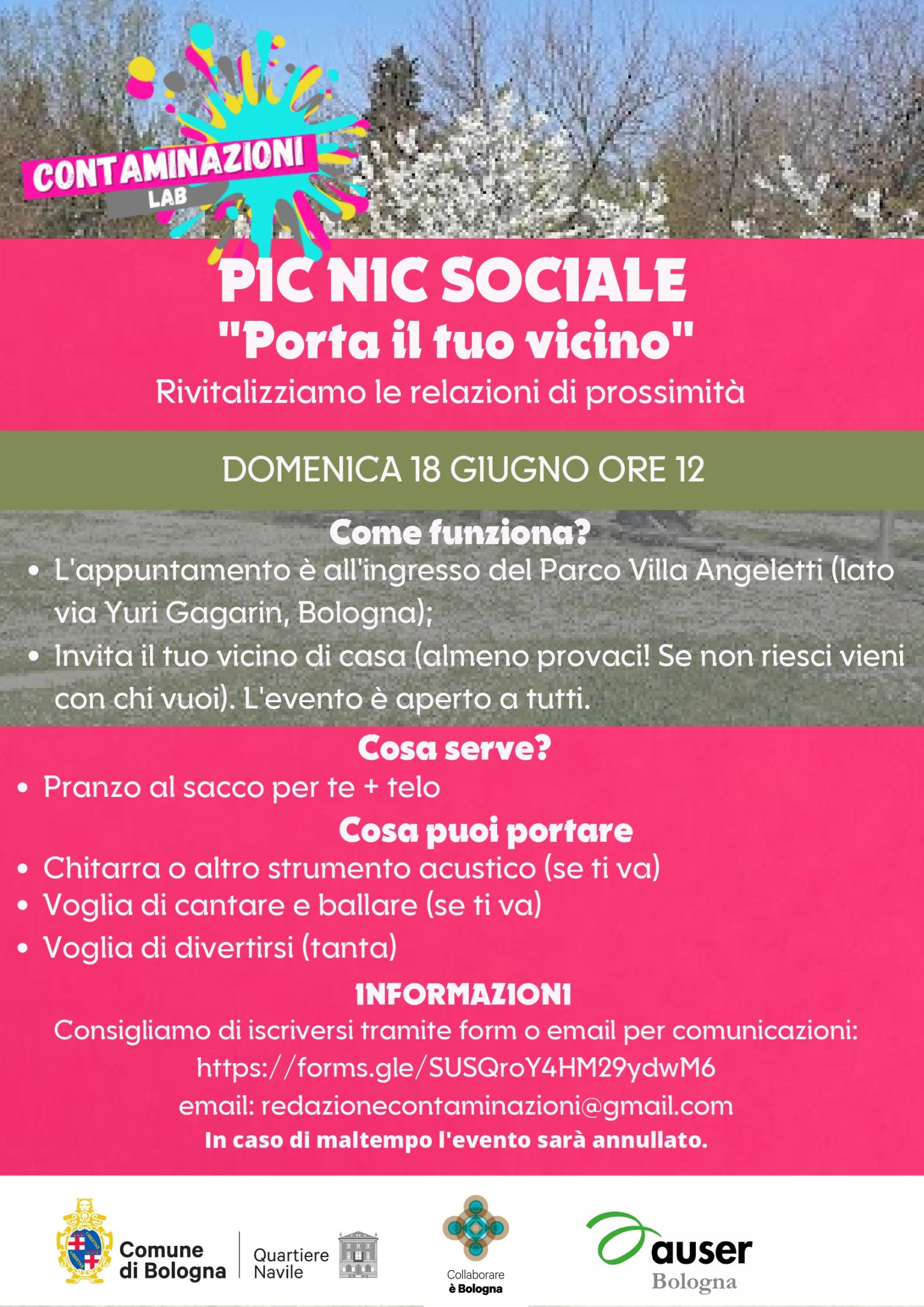 La proposta progettuale avrà inizio nel quartiere Navile attraverso la promozione del primo pic-nic sociale per poi estendersi agli altri quartieri di Bologna. Questo primo appuntamento, oltre a realizzare un momento di convivialità ha lo scopo di far conoscere il progetto e coinvolgere i destinatari